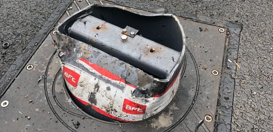 The damaged rising bollard at the Peveril Drive entrance is scheduled for replacement on Wednesday, August 7th. If all goes as planned, both bollards will be back in operation on the same day.
